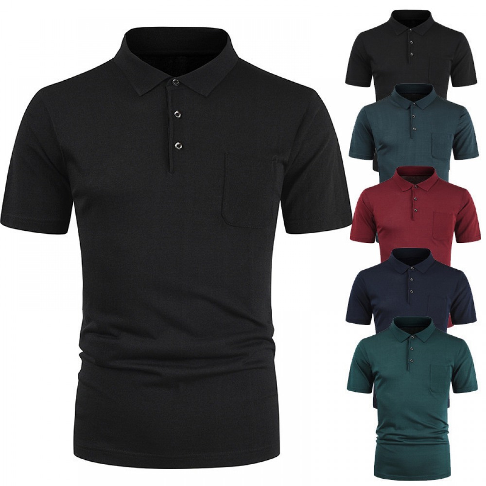 Men's Pullover T-Shirt Youth Solid Color Pocket Lapel T-Shirt