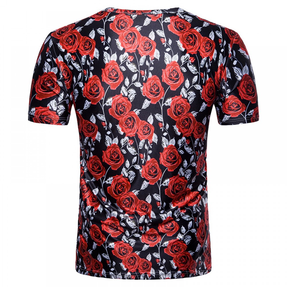 Men's 3D Short Sleeve T-Shirt Rose Print Valentine's Day Red Rose T-Shirt Flower Short Sleeve
