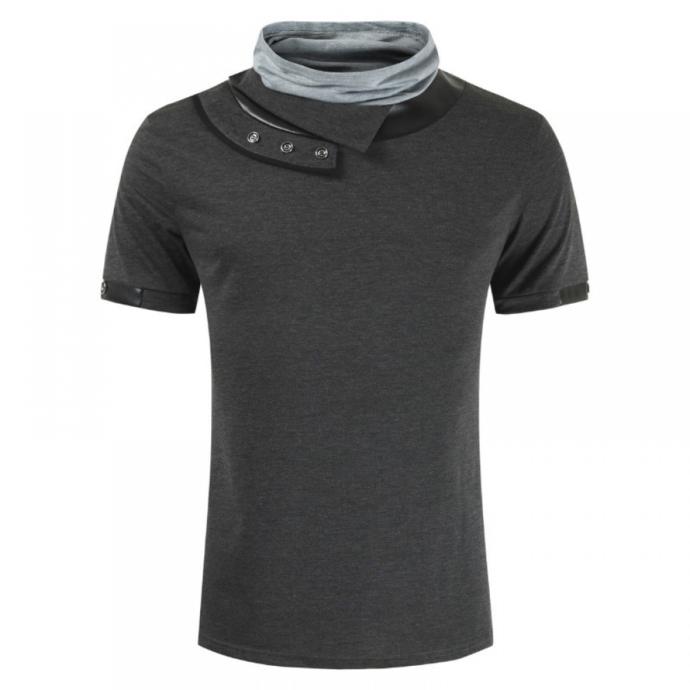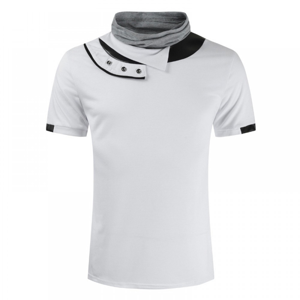 Personalized Casual Korean Slim Men's Summer T-Shirt Personality Stitching Lapel Fashion Casual Short-Sleeved T-Shirts