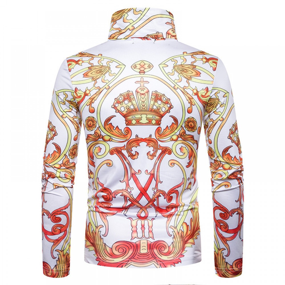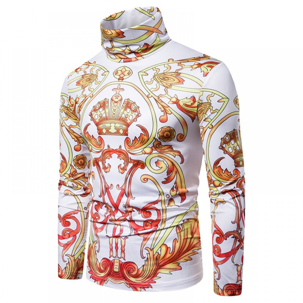 New Men's Plus Size 3D Classical Crown Printing High Neck Long Sleeve T-Shirt Bottoming Shirt